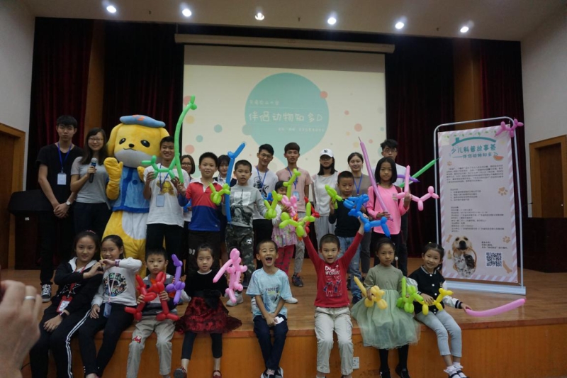 在之后的问答环节中,更有学院吉祥物与小朋友进行互动,为聪慧的小朋友们派发精美礼品。最重要的环节,自然是充分发挥小朋友们手脑能力的宠物气球教学。志愿者们以热情亲和的态度,辅以细致耐心地讲解,手把手地教导小朋友们制作出一个个精美的宠物狗狗气球。