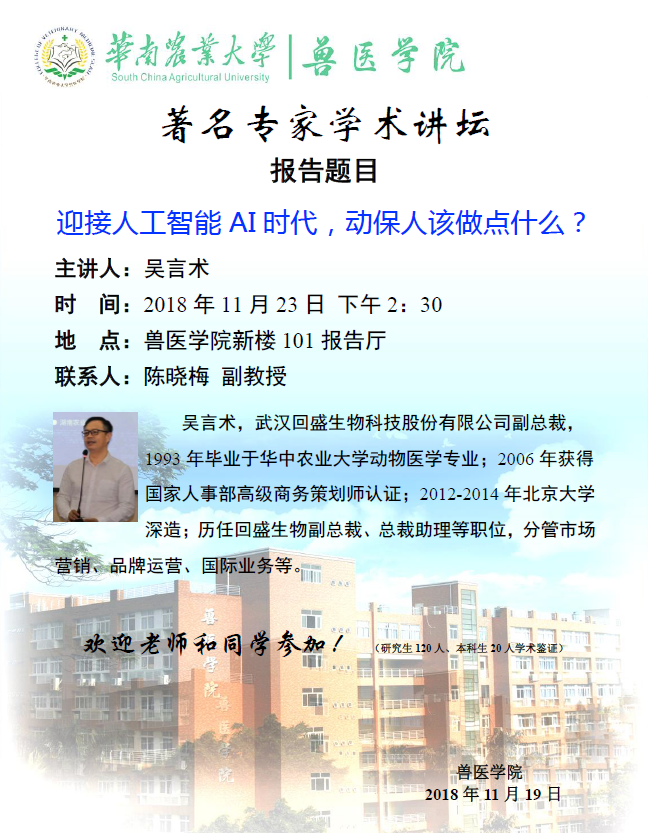 学术讲座(2018.11.23):迎接人工智能AI时代,动保人该做点什么?