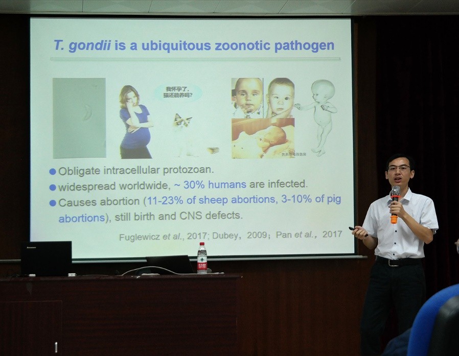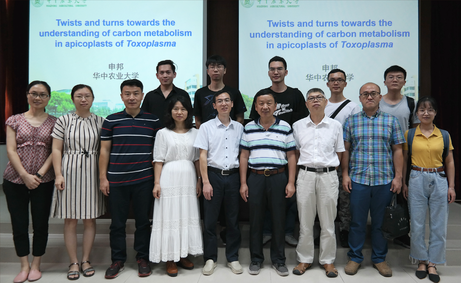 10月8日上午10点,华中农业大学申邦教授应我院邀请,在我院101报告厅为我院师生作了一场题为“Twists and turns towards the understanding of carbon metabolism in apicoplasts of Toxoplasma(在曲折与困难中探究弓形虫顶质体中的碳代谢机制)”的学术报告,报告由冯耀宇教授主持。
