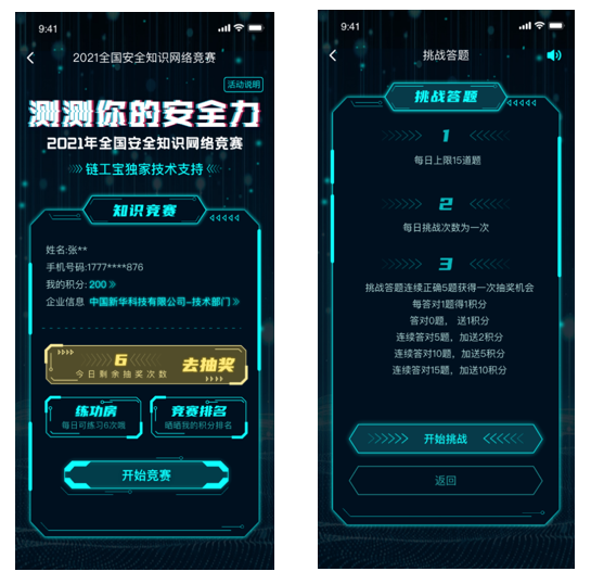 为鼓励参赛者学习掌握更多安全知识,提高安全力,挑战答题设置了抽奖环节。每答对5题,便可获得一次抽奖机会,每天最多可获得3次抽奖机会,奖品设置丰富多样。