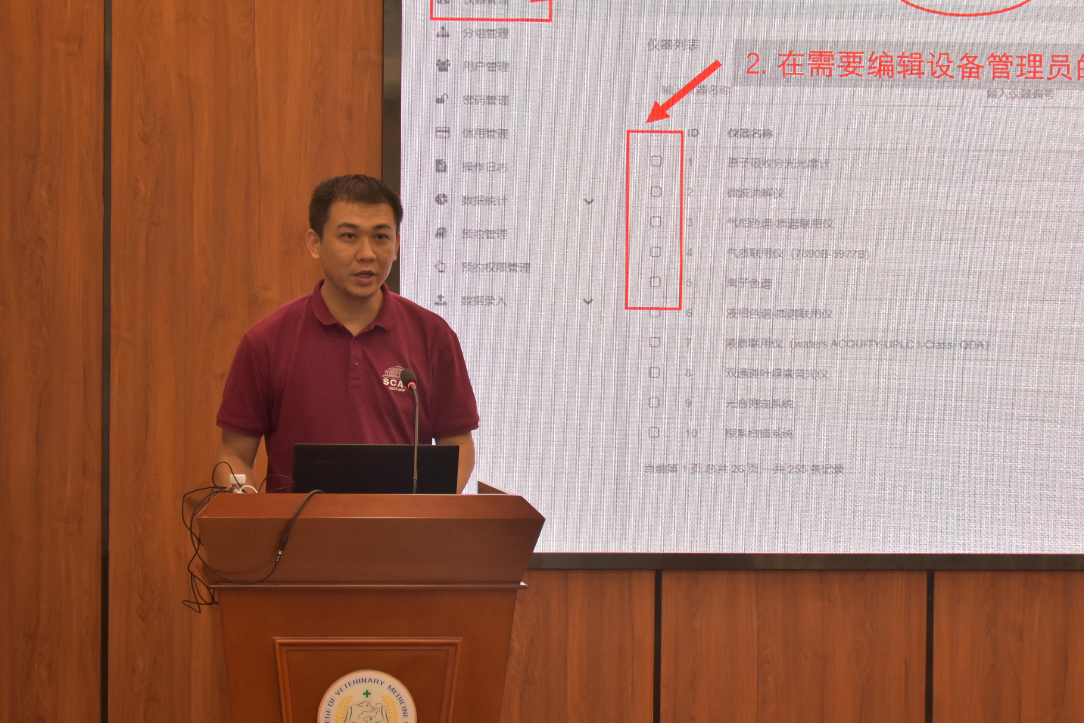 曾老师详细介绍了设备共享平台系统,现场演示如何提交预约申请、预约成功后如何自主上机以及管理员如何审批预约、核定费用,并对现场老师的问题进行了答疑。