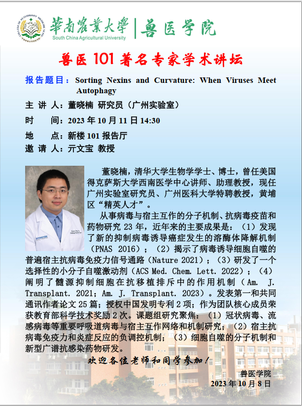 学术论坛(2023.10.11)Sorting Nexins and Curvature: When Viruses Meet Autophagy