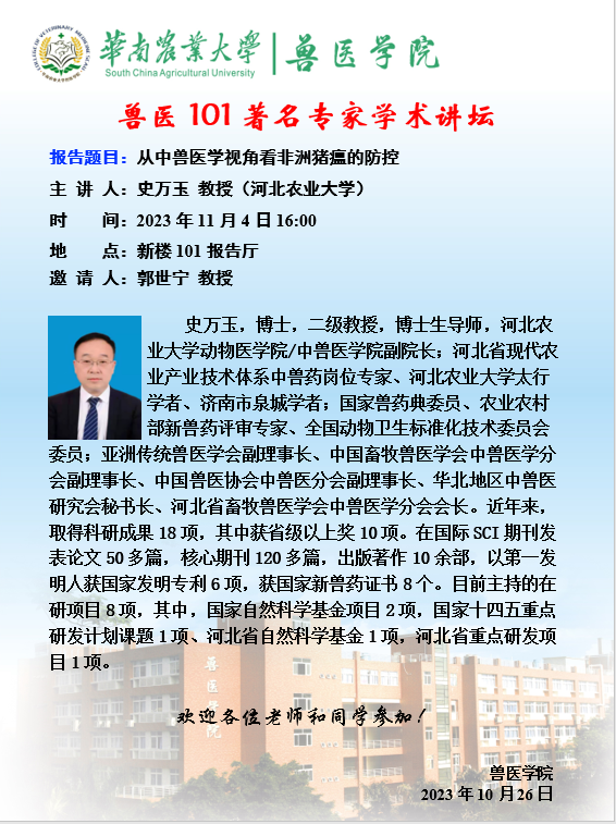 学术论坛(2023.11.4)从中兽医学视角看非洲猪瘟的防控